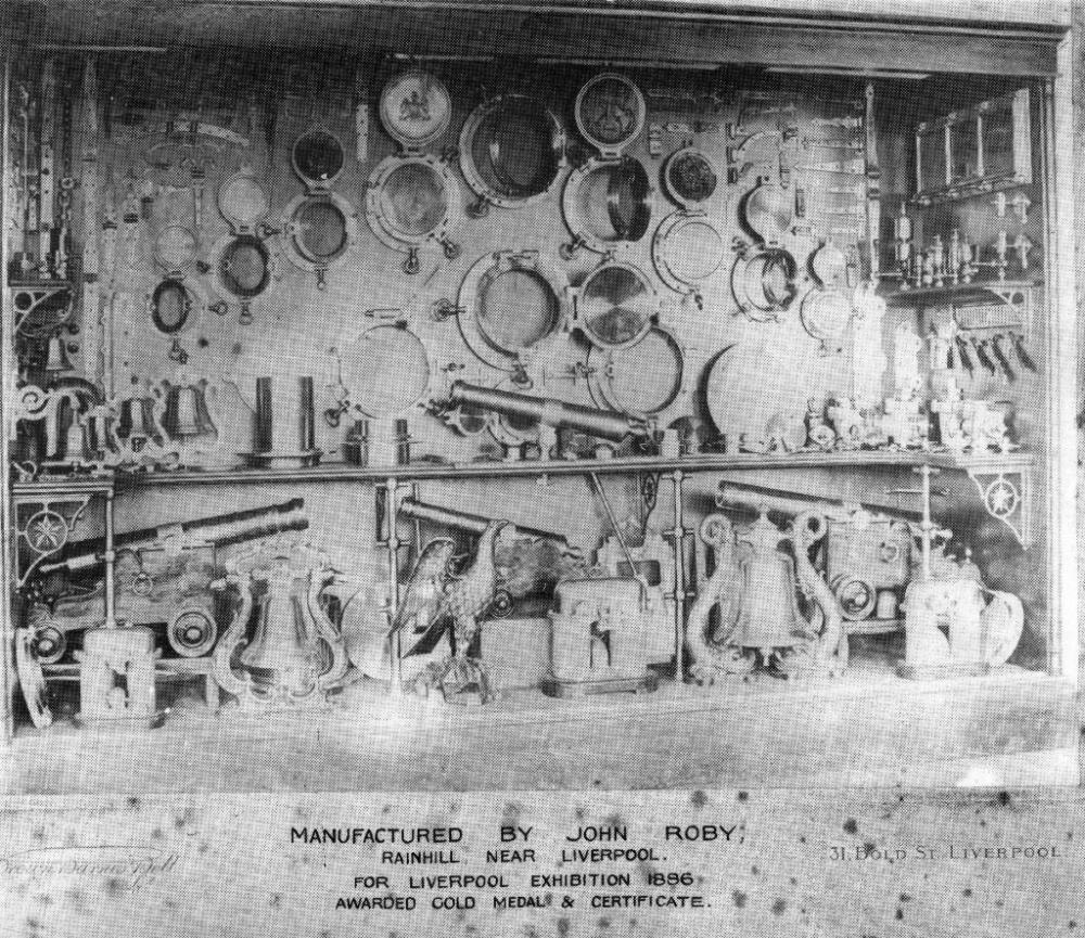 Thomas Utley LTD was a primary supplier of metal fittings for the Titanic. Unfortunately, their surviving workbooks do not cover the period when the Titanic was built (the Titanic was built at the Harland and Wolff shipyard in Belfast, Ireland between March 1909 and May 1911) but there is no reason to believe that the pattern of the previous twenty plus years had changed, so it is very possible that John Roby LTD worked on sidelights, port holes and other fittings which were destined for the Titanic, or one of its sister ships, the Olympic and the Britannic.